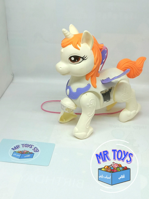 اسب تکشاخ باطری خور چراغدار با افسار | موزیکال و متحرک