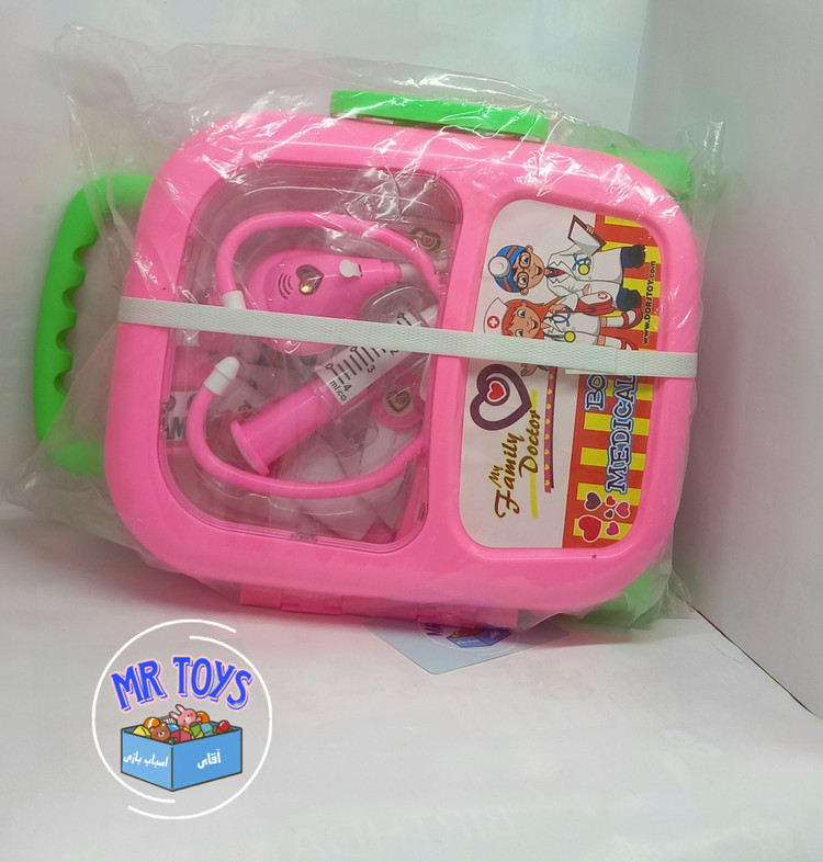 محتویات بسته: گوشسنج، پنس، سرنگ، تبسنج، گوشی معاینه + صدای قلب، چکش معاینه، قیچی، آینه دندان، جعبه کمکهای اولیه، کارت ویزیت/مولتیویتامین و... ساخت برند ایرانی «دُرج تویز»